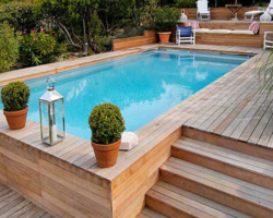 • Piscine semi-enterrée en bois : 9 000€ à 17 000€